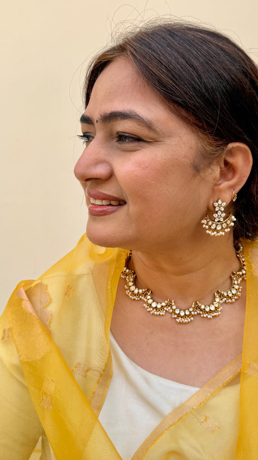 Chaand Polki & Pearl Necklace Set