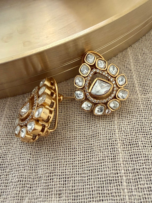 Rani Reshma Gold Finish Kundan Dangler Earrings