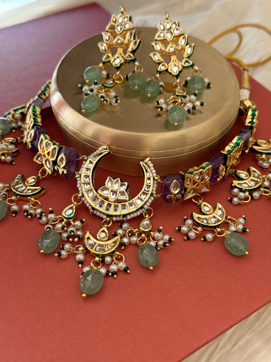 Radha Kundan Amethyst Choker Necklace Set