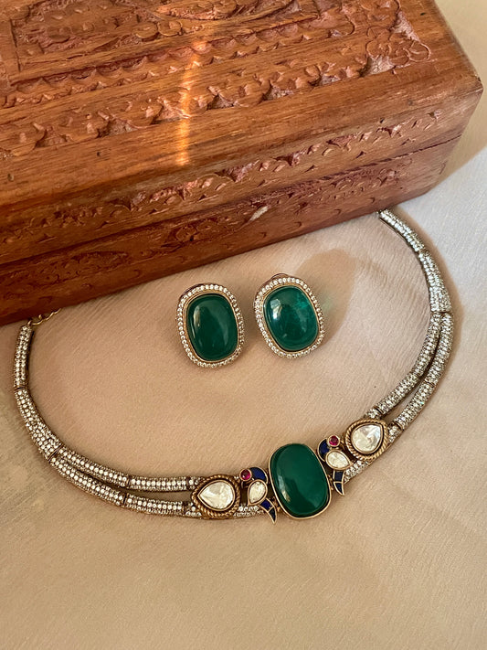 Gulistaan Ruby Emerald Necklace Set- Made to Order