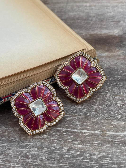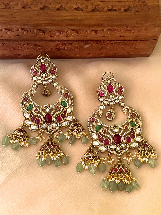 Devyani Moissanite Polki & Ruby Dangler Earrings