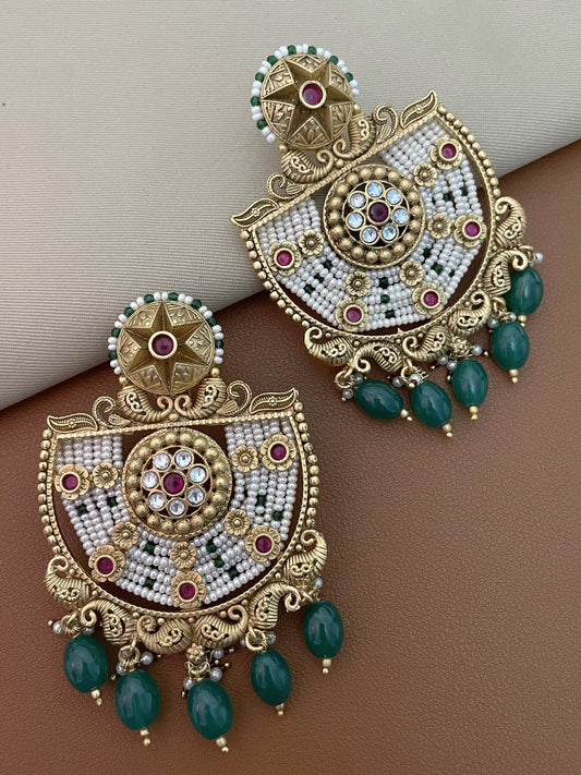 Gayatri Antique Statement Gold Finish Dangler Earrings