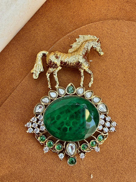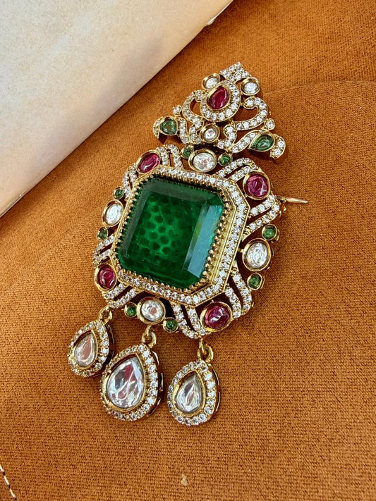 Patraj Emerald and Ruby Polki Brooch ( Single )