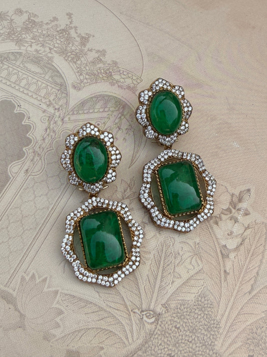 Pre Order- Usha Emerald Moissanite Polki Earrings
