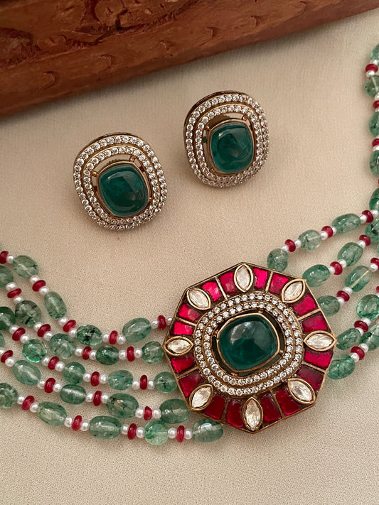 Pre Order – Sangeeta Blue Polki Necklace Set