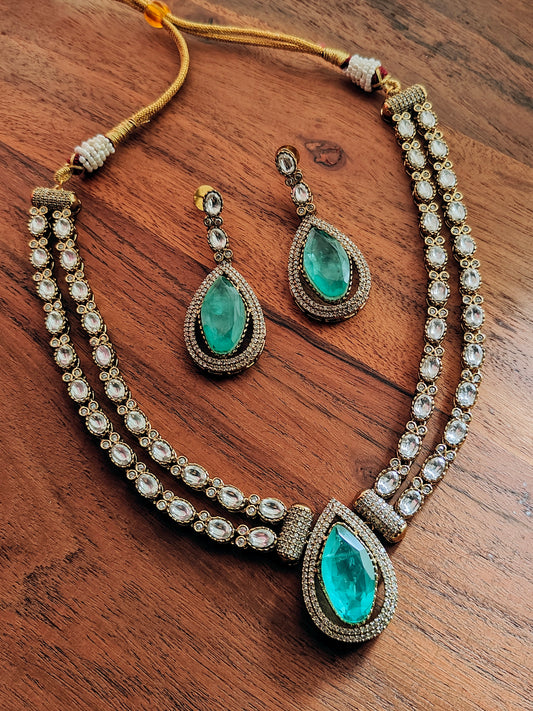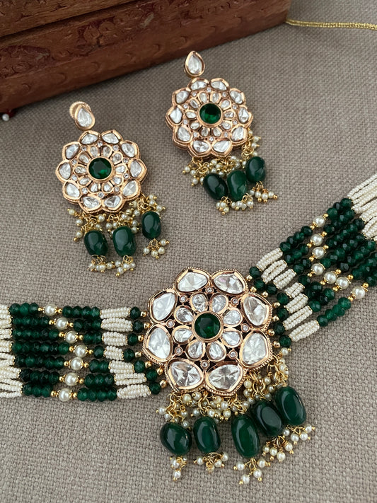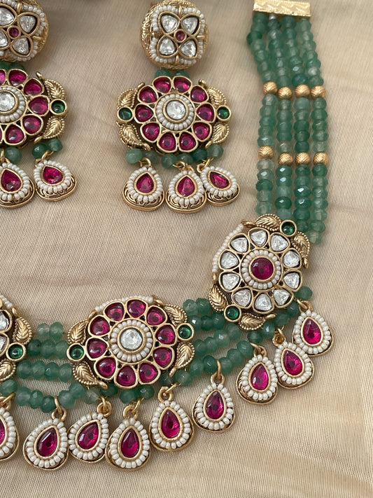 Amaira Victorian Polki & Green Onyx Necklace Set