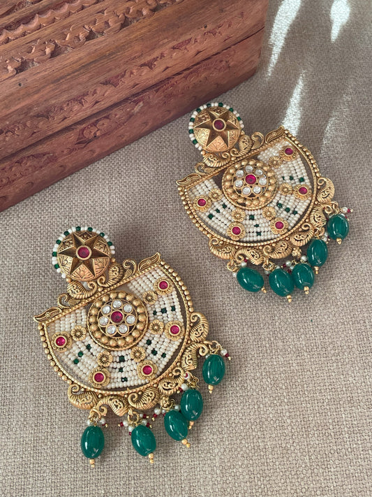 Pre Order- Usha Emerald Moissanite Polki Earrings