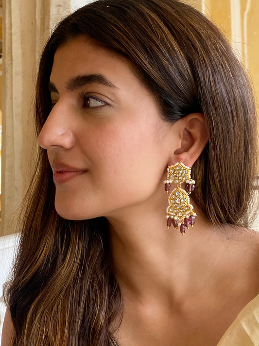Devyani Moissanite Polki & Ruby Dangler Earrings