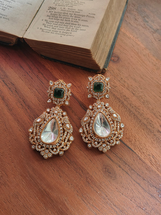 Pre Order- Bhavani Emerald Moissanite Polki Earrings