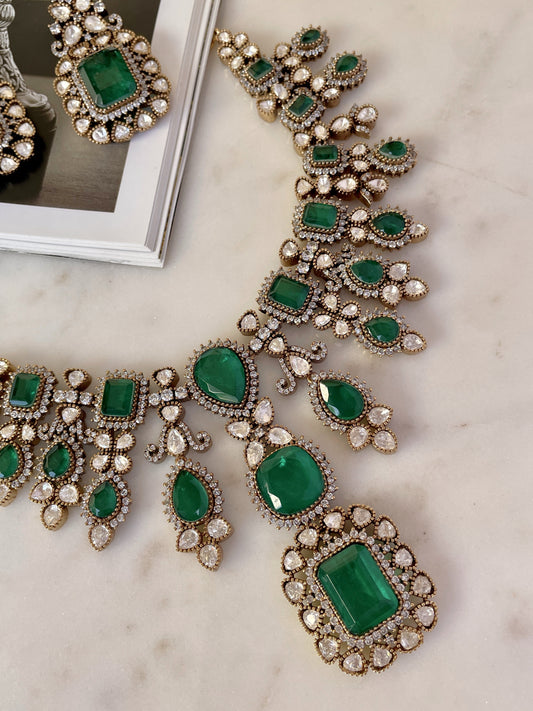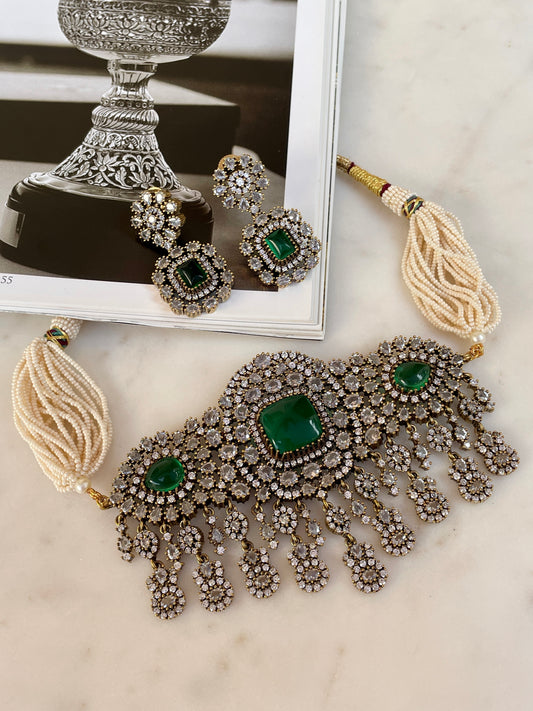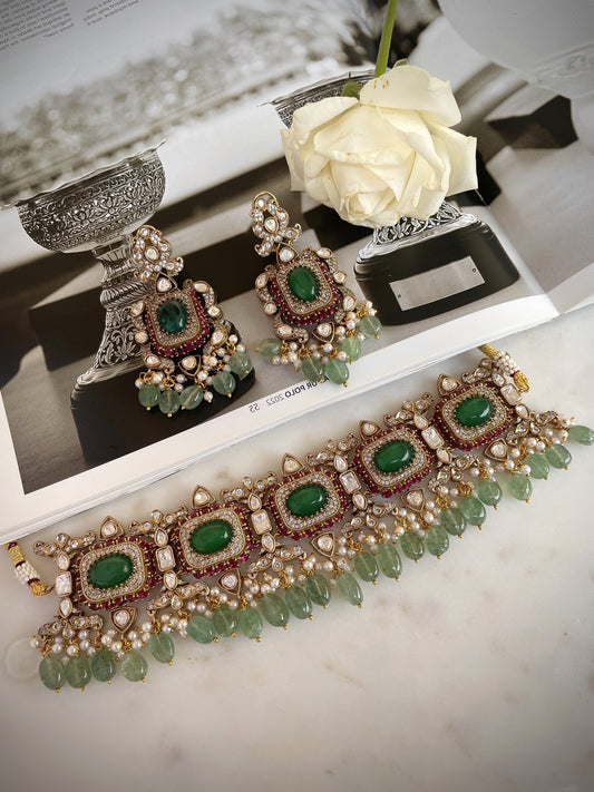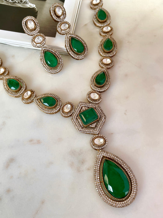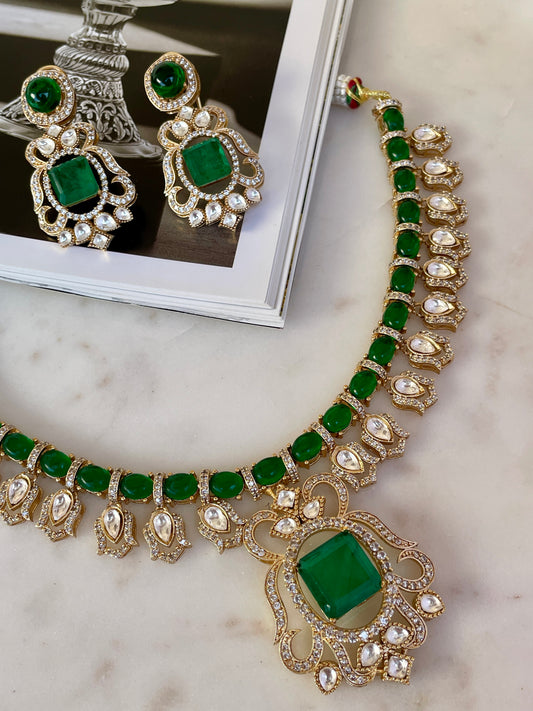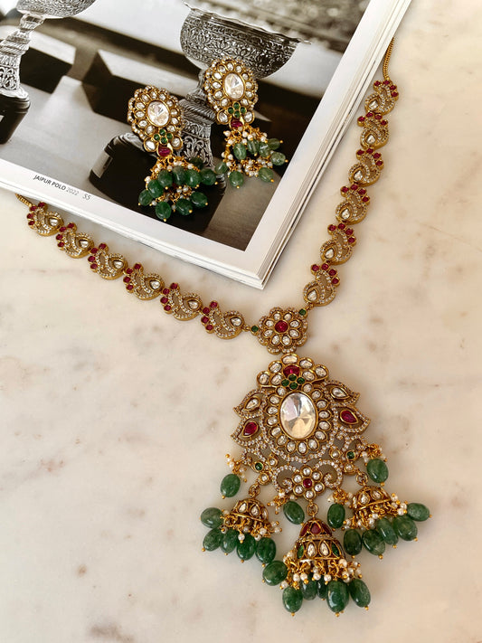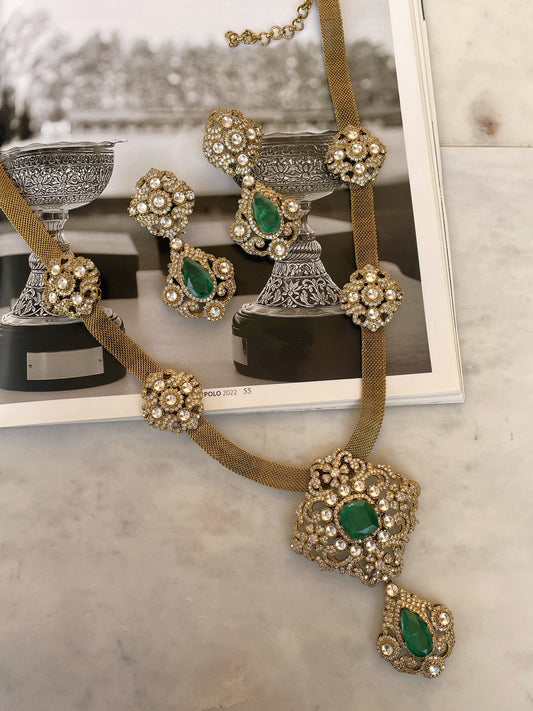 Pre Order- Tanya Emerald Pearl Necklace Set