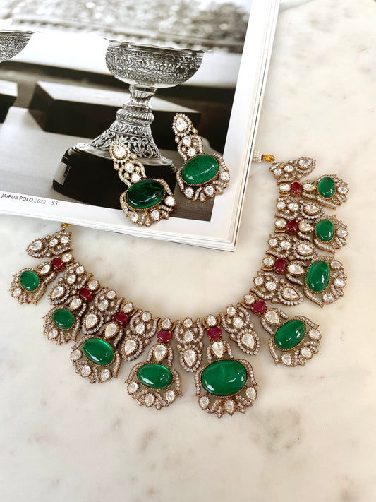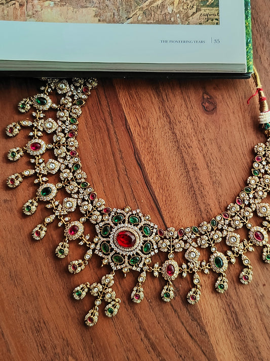 Pre Order- Indus Ruby Moissanite Polki Necklace Set