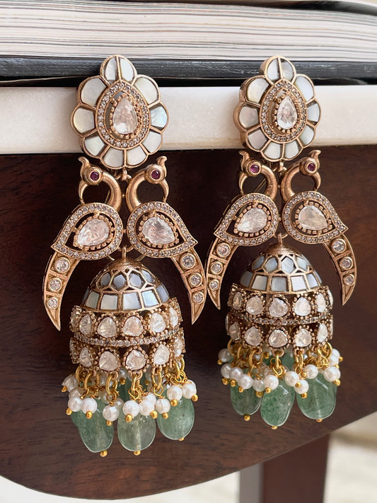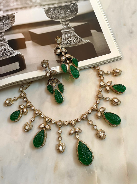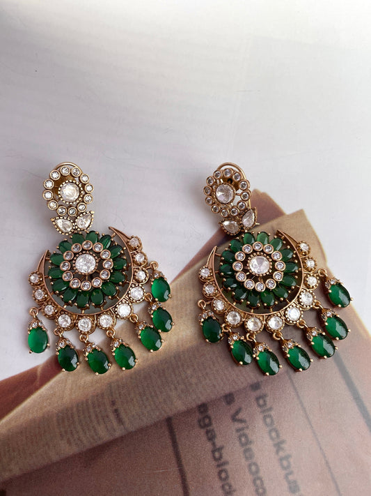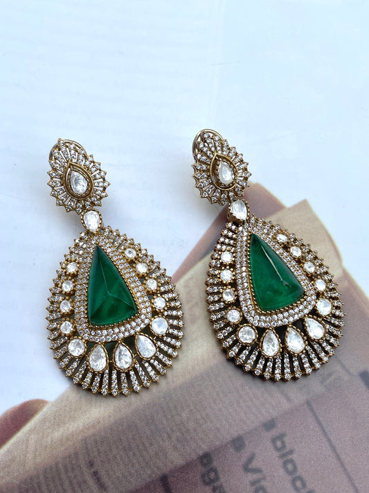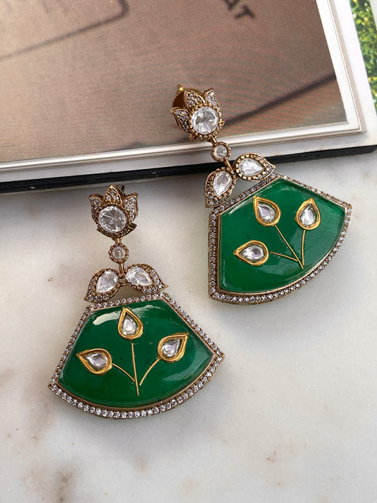 Pre Order- Usha Emerald Moissanite Polki Earrings