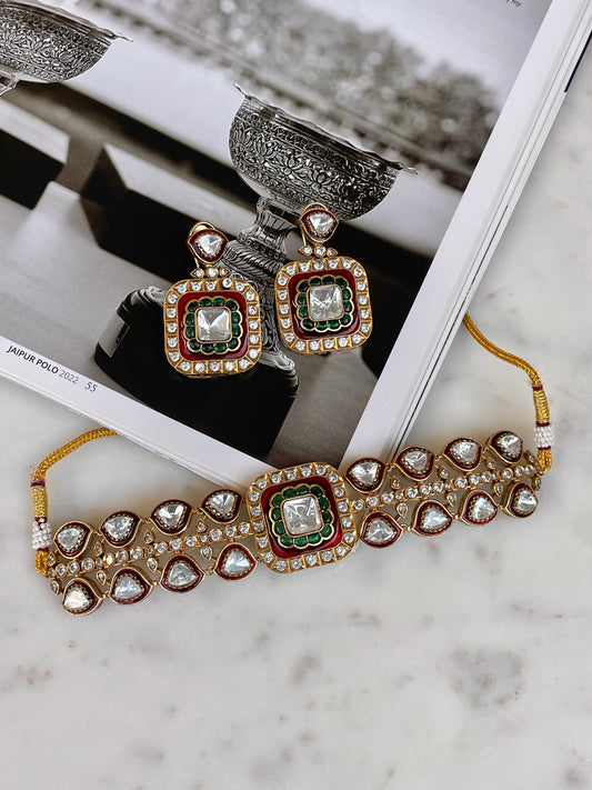 Pre Order- Vanya Moissanite Polki & Enamel Choker