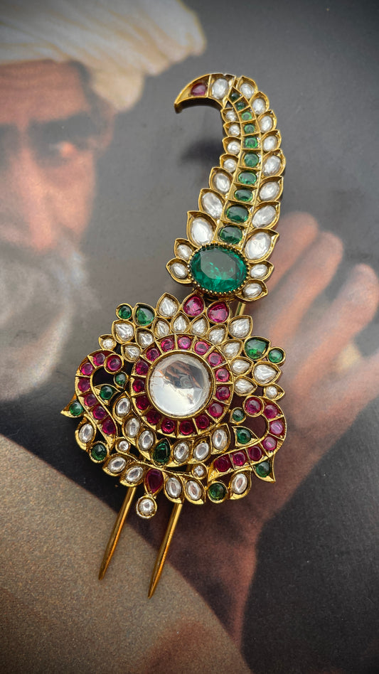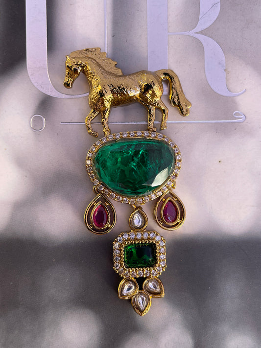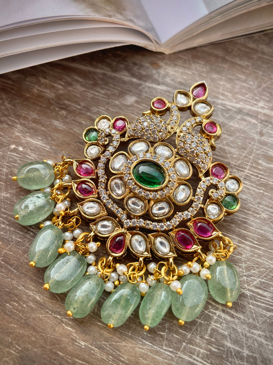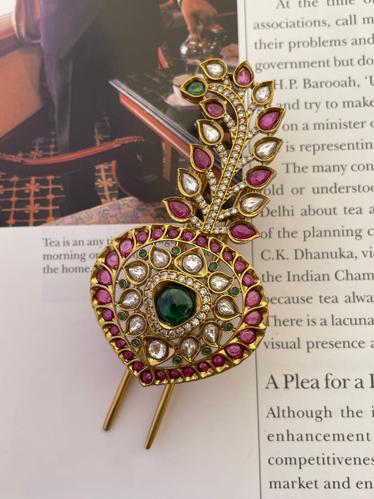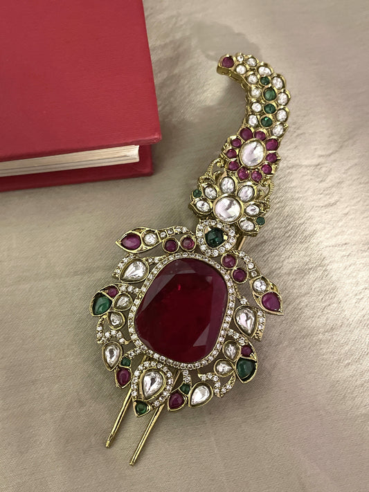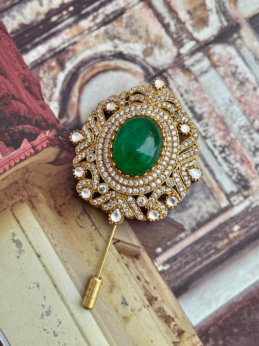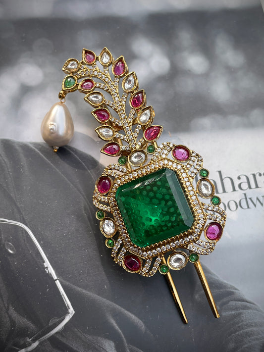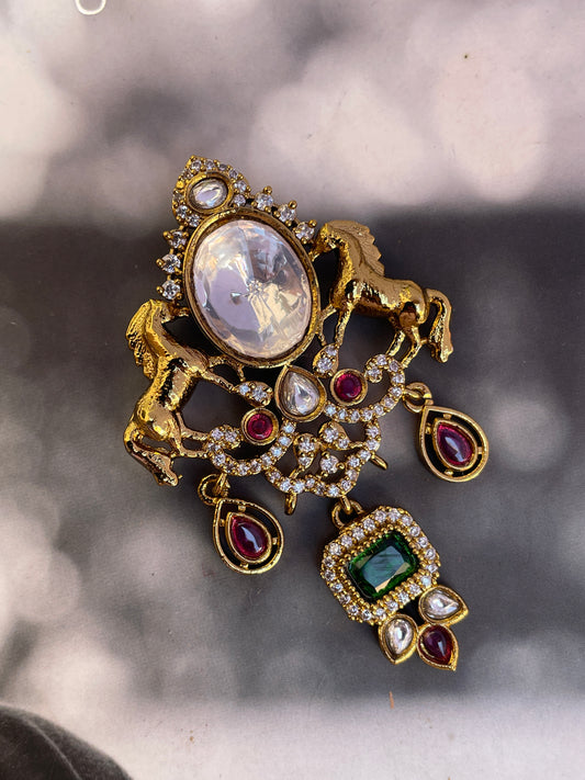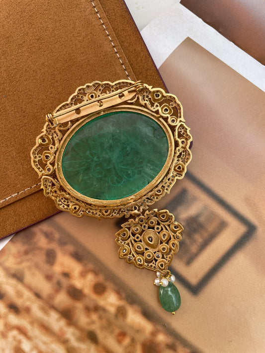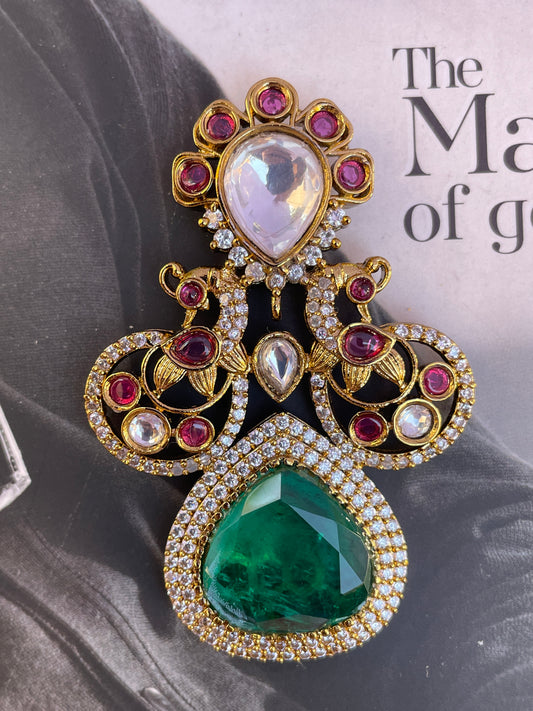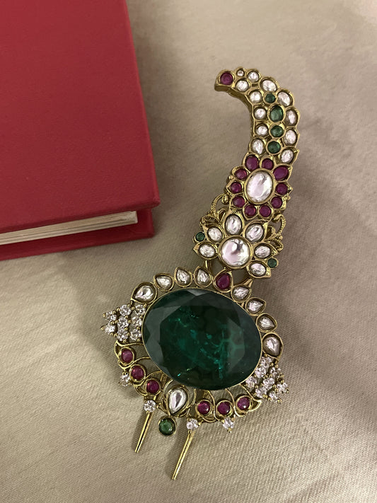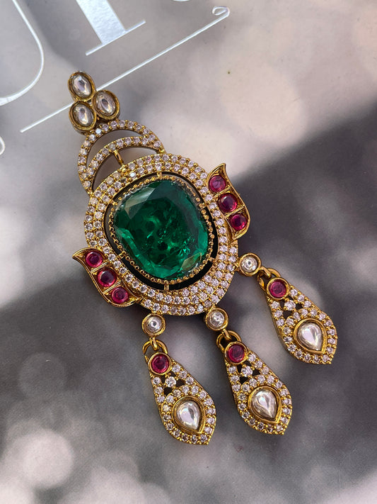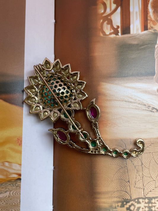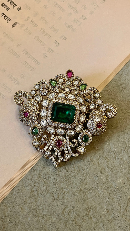 Patraj Emerald and Ruby Polki Brooch ( Single )