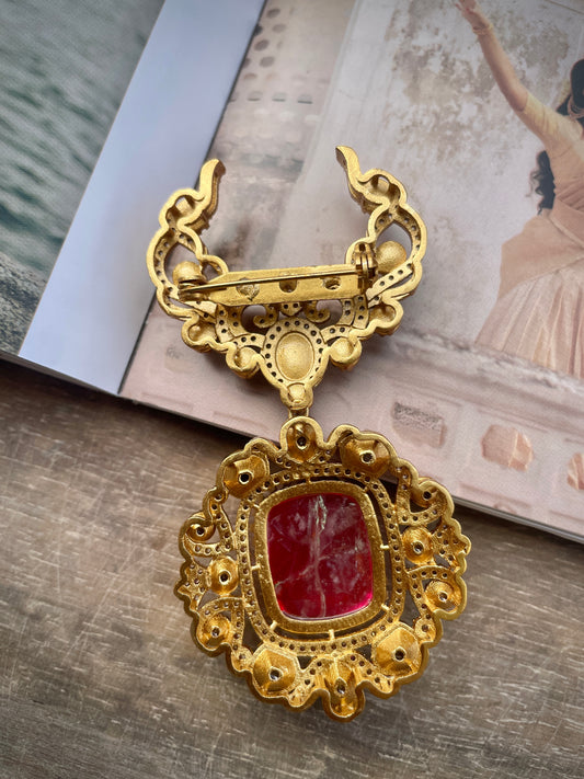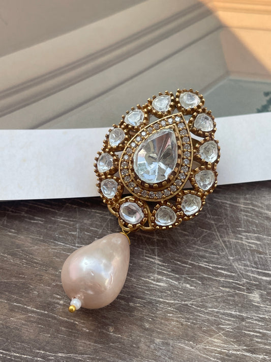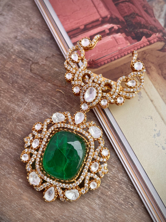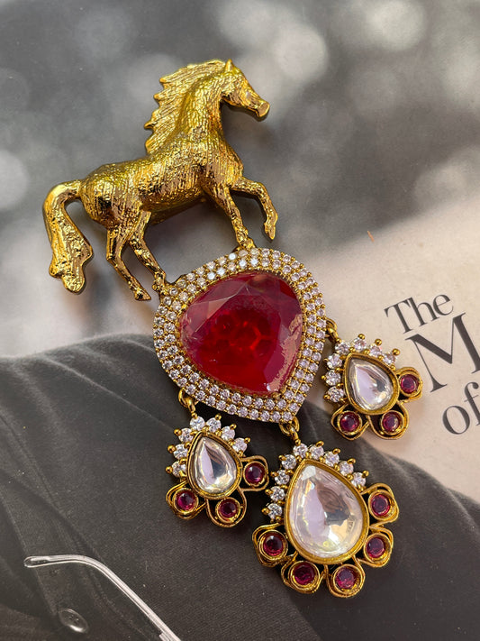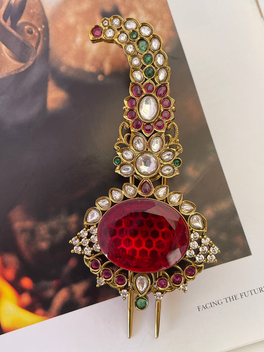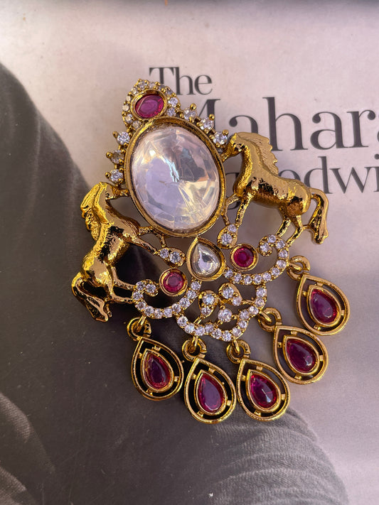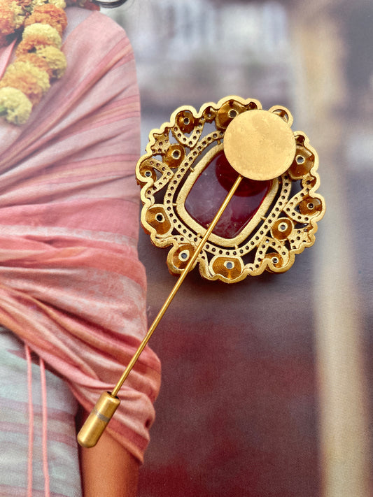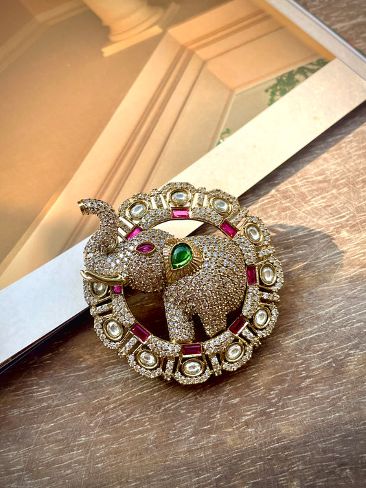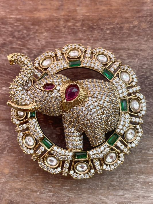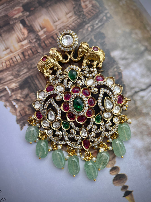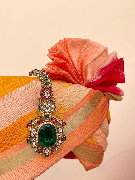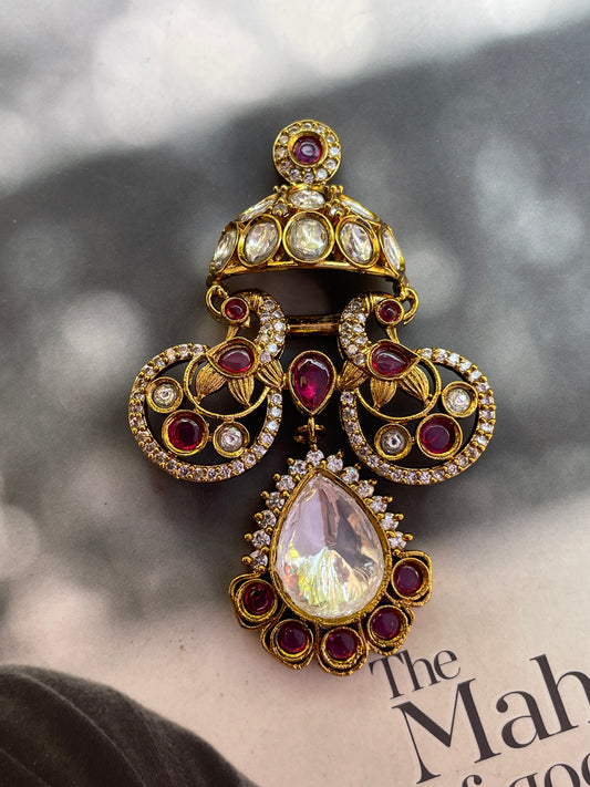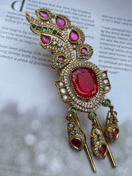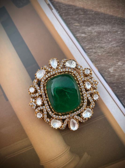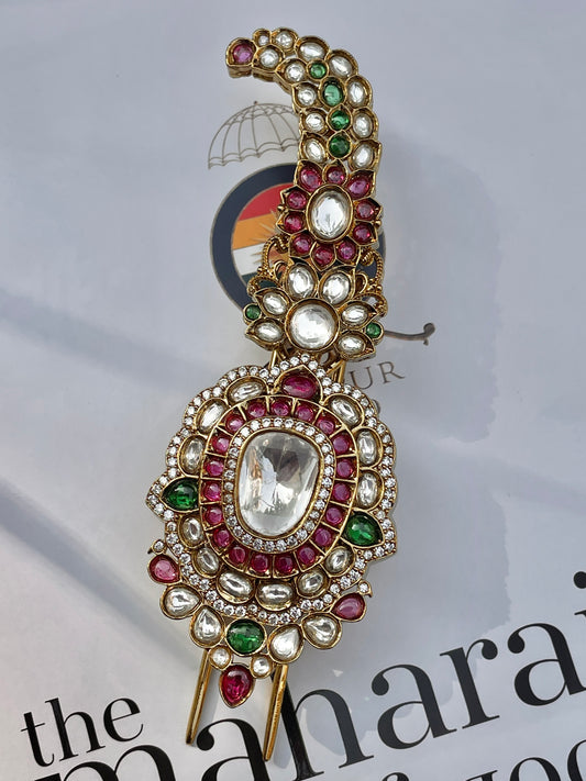 Patraj Emerald and Ruby Polki Brooch ( Single )
