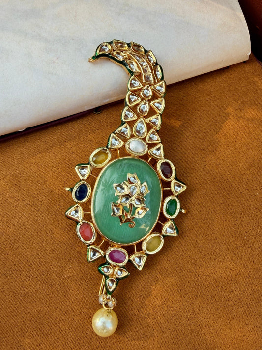 Patraj Emerald and Ruby Polki Brooch ( Single )