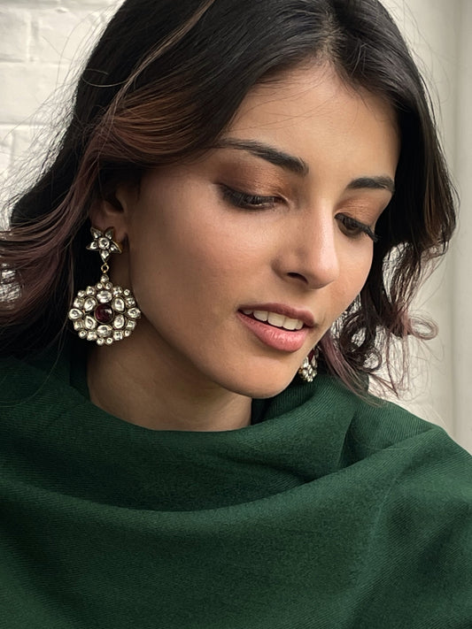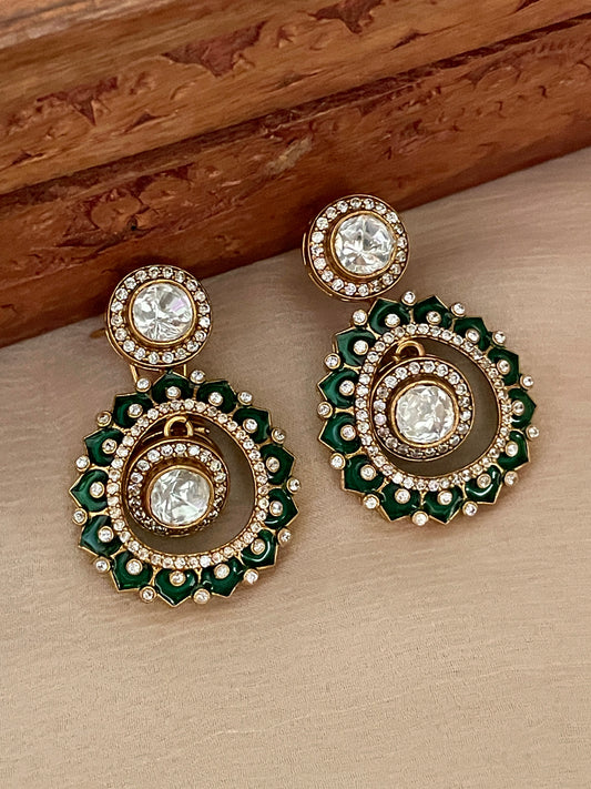 Amrita Polki Gold Finish Polki & Emerald Earrings