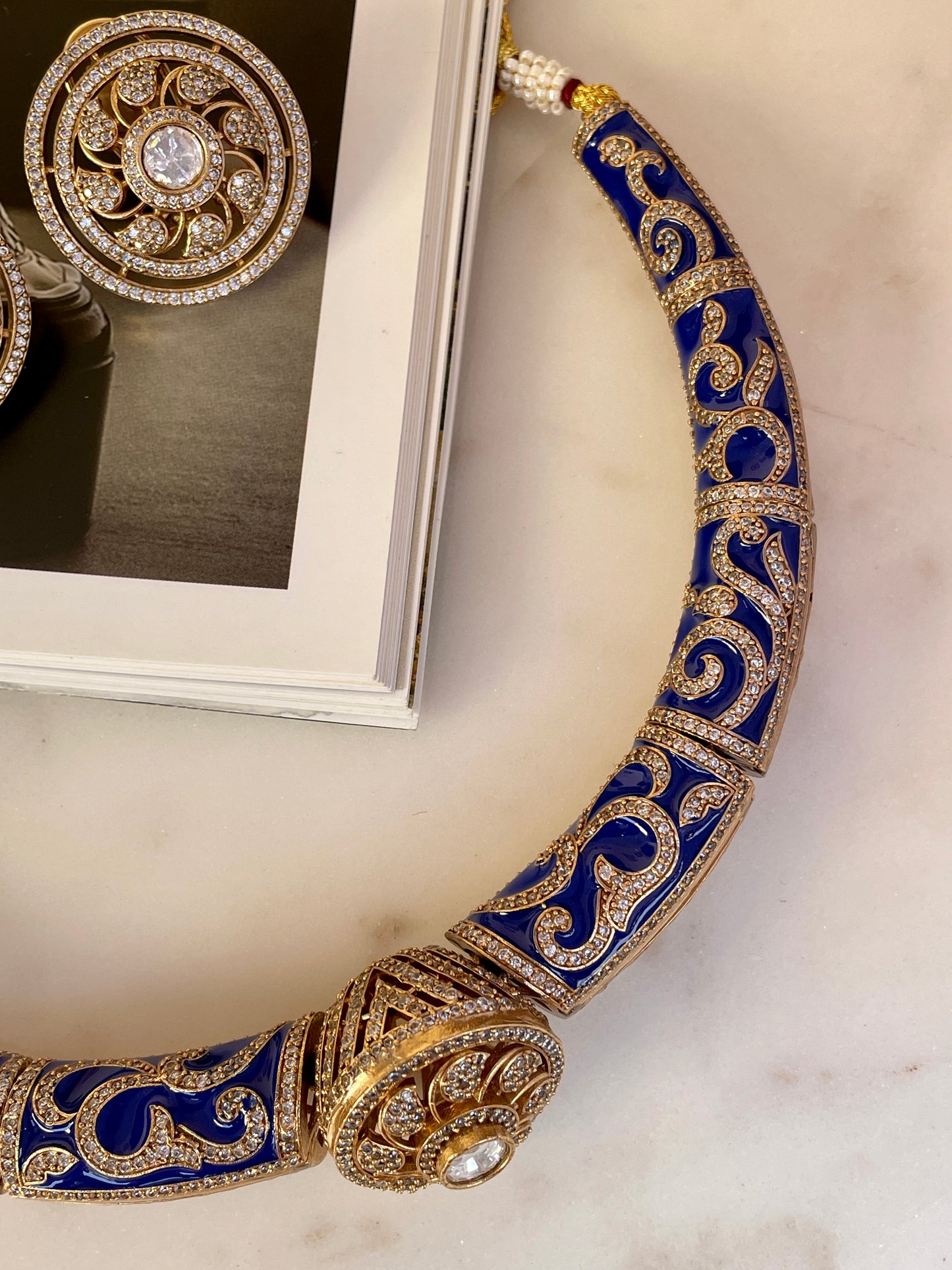 Pre Order- Saumya Polki Blue Meenakari Hasli