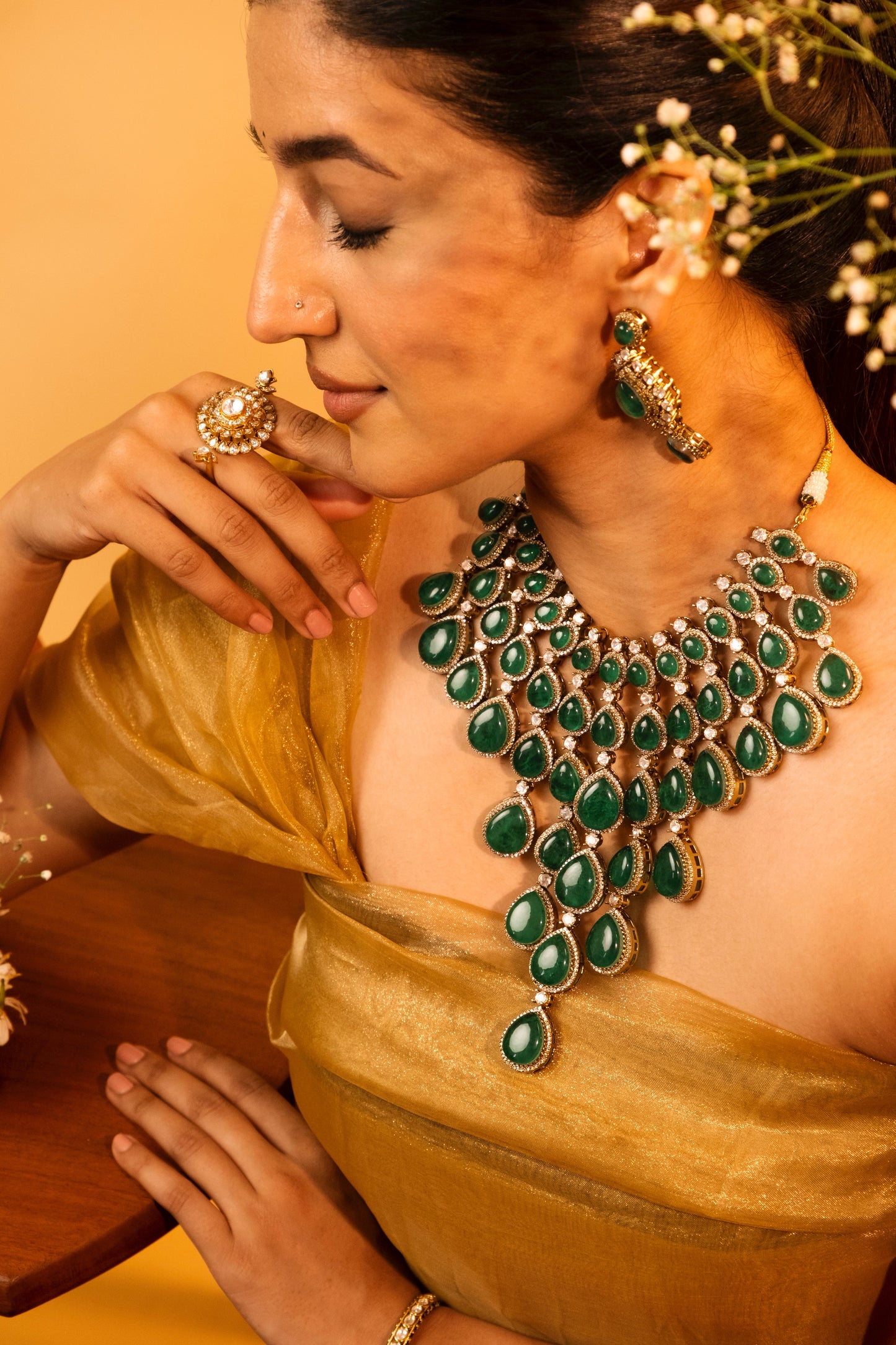 Pre Order- Tejasvini Emerald Necklace Set